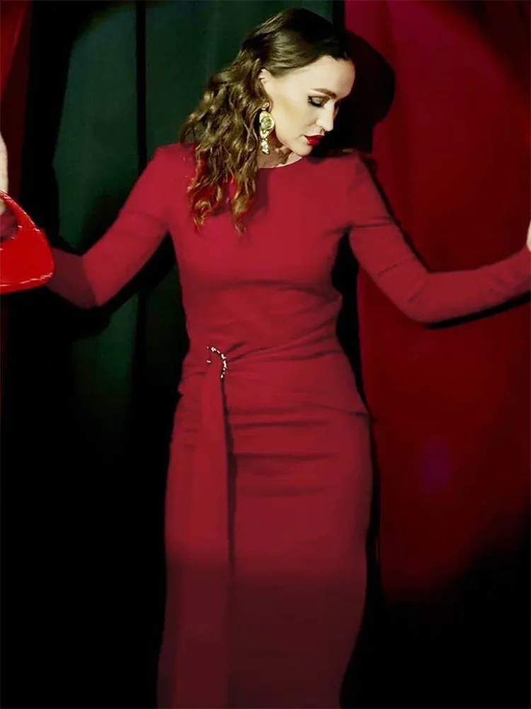 Tossy Black Fashion Lace-Up Long Dress For Women Skinny High Waist Patchwork Side Split Elegant Dress Female Party Maxi Dress